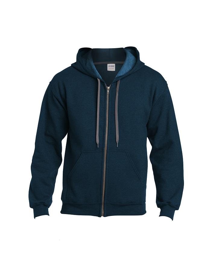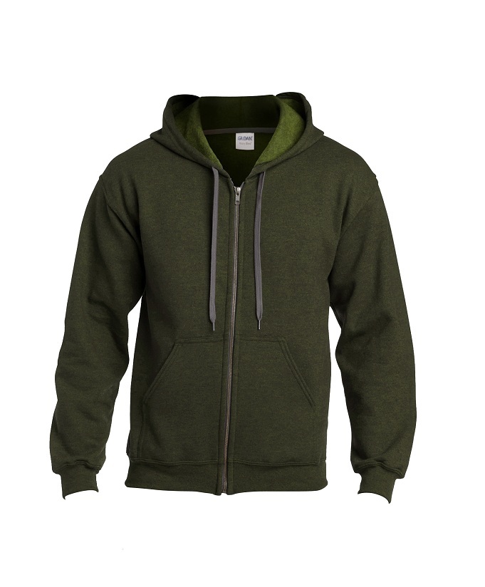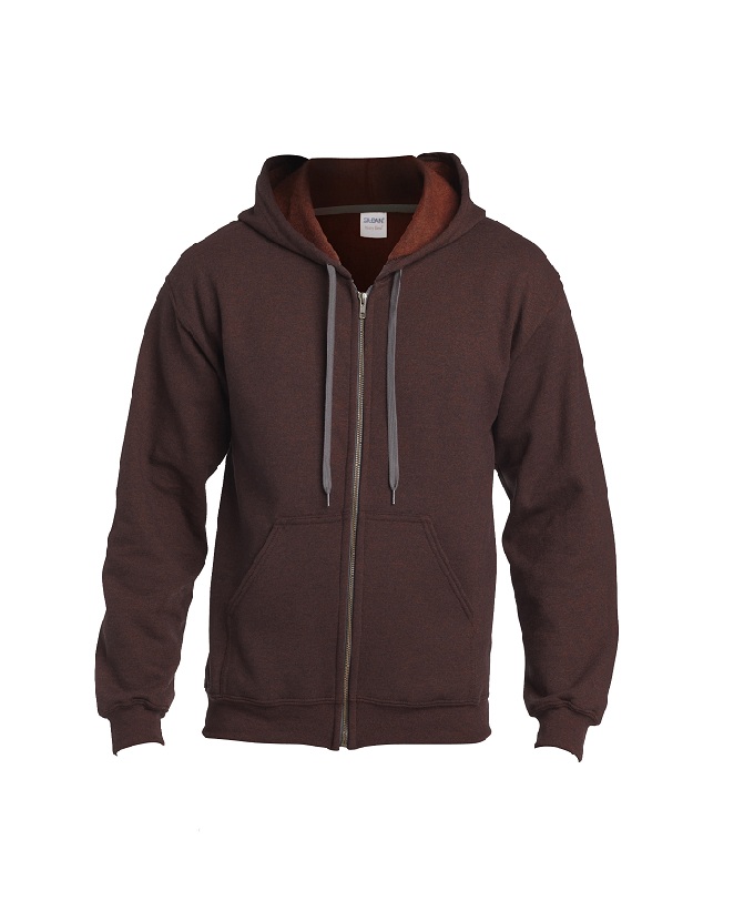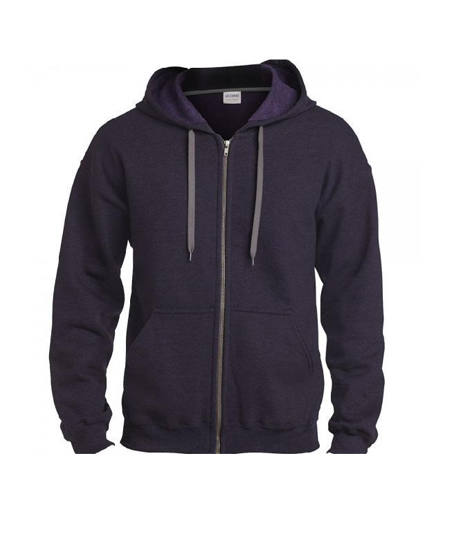 1 x 1 Rib with Spandex, 50% Cotton / 50% Polyester Preshrunk Fleece Knit, 8.0 oz per sq yd, Brass Zipper with Contrast Dark Grey Trim, Cross Dyed Shades (2 Colors in One Fabric), Pouch Pocket, Unlined Hood